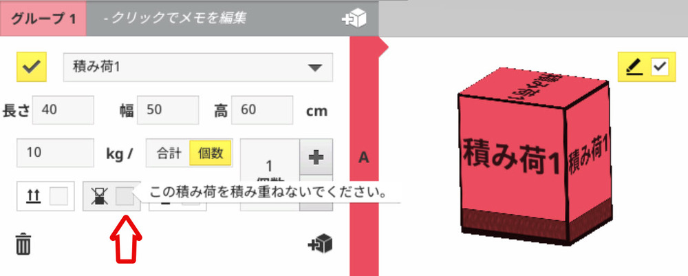 次の制約を設定できます:傾けない、この積み荷品目に積み重ねない、および/または回転しない。