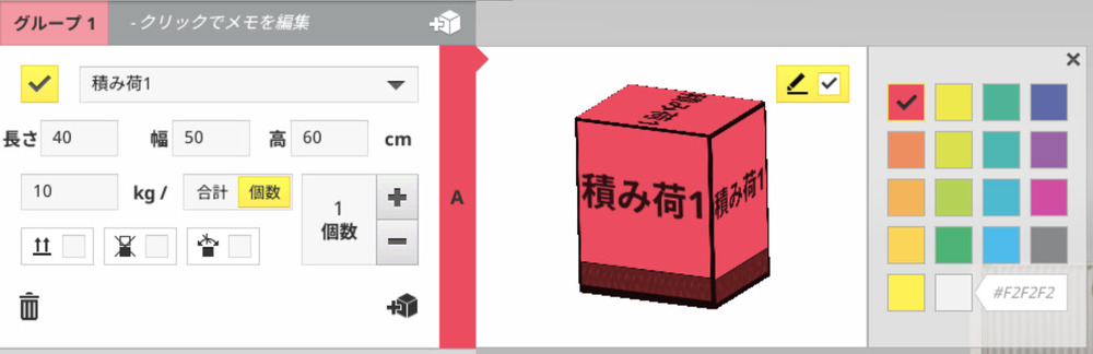 第一画面の左側の列に、積載する品目を挿入します。「品目」とは箱を意味します。現在、EasyCargoは直方体の長方形でのみ機能することに注意してください。他の形状はまだサポートされていません。