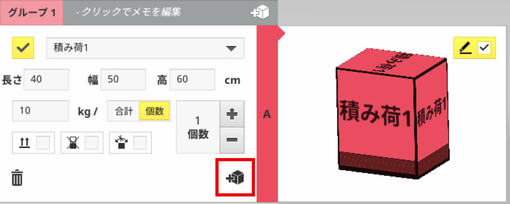 ボックスアイコンをクリックすると、 別の品目タイプを追加できます。